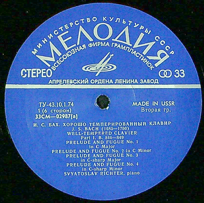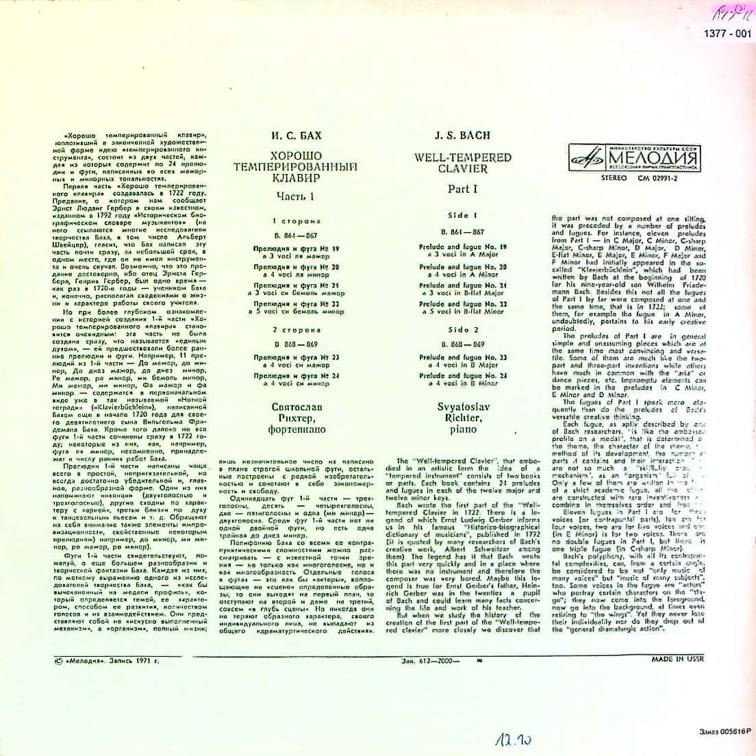商品コード:1377-001t[MELODIYA] S.リヒテル(pf) / バッハ:平均律クラヴィア曲集第1巻BWV.846~869