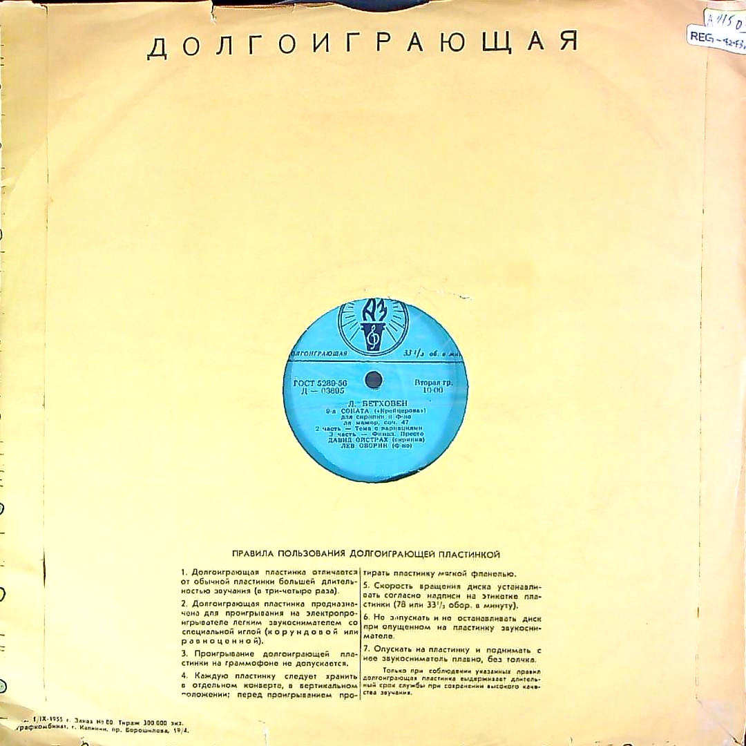 商品コード:REG-4243n[露MELODIYA] D.オイストラフ(vn) / ベートーヴェン:Vnソナタ9番Op.47「クロイツェル」