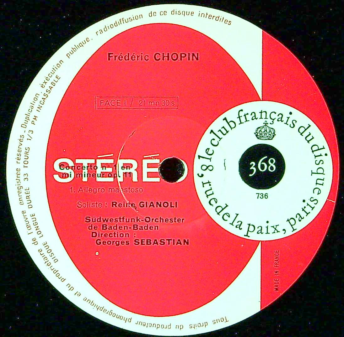 商品コード:REG-4234[仏Club Français] R.ジャノリ(pf)/ ショパン:Pf協奏曲1番Op.11