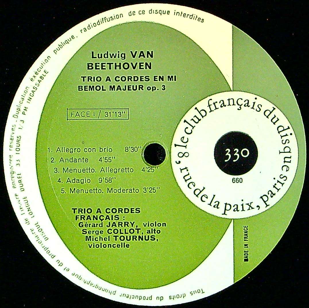商品コード:REG-4230[仏Club Français] フランス弦楽トリオ/ ベートーヴェン:弦楽三重奏曲1番Op.3, 弦楽三重奏曲2~4番Op.9