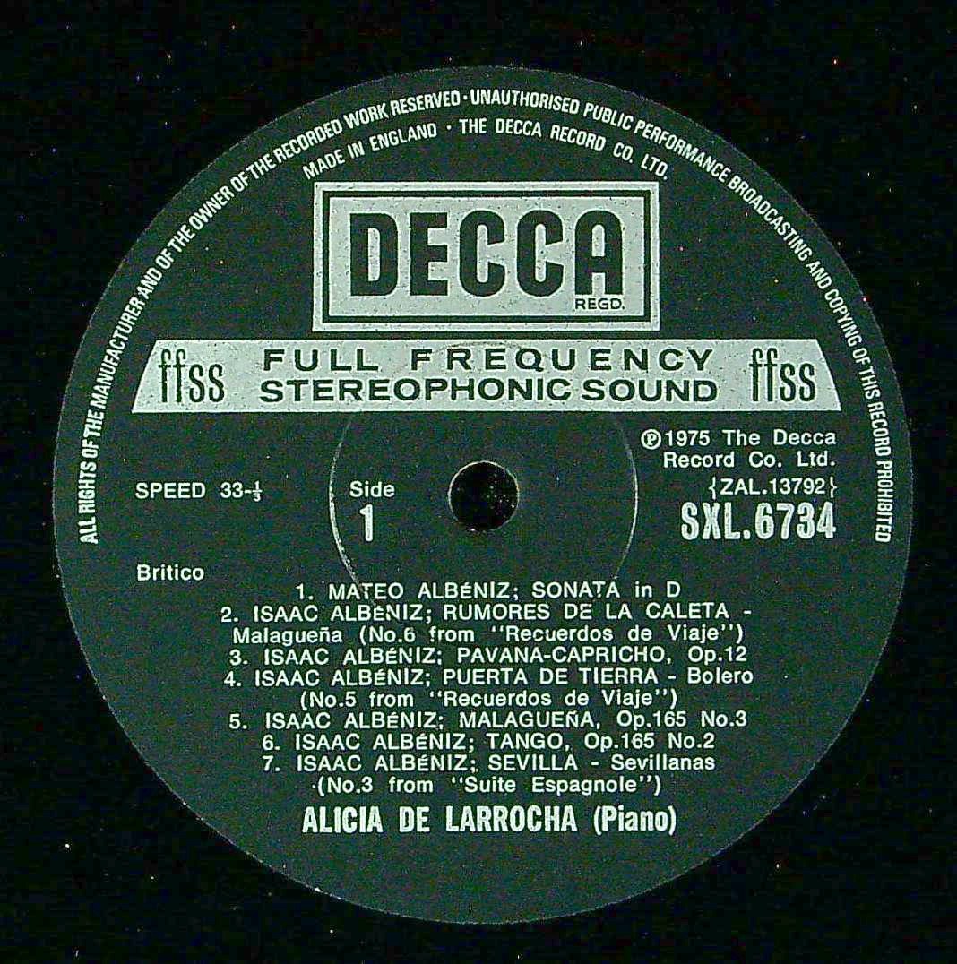 商品コード:1378-062[DECCA] A.d.ラローチャ(pf) / 「スパニッシュ・アンコール/アルベニス, ソレール, グラナドス, トゥリーナ