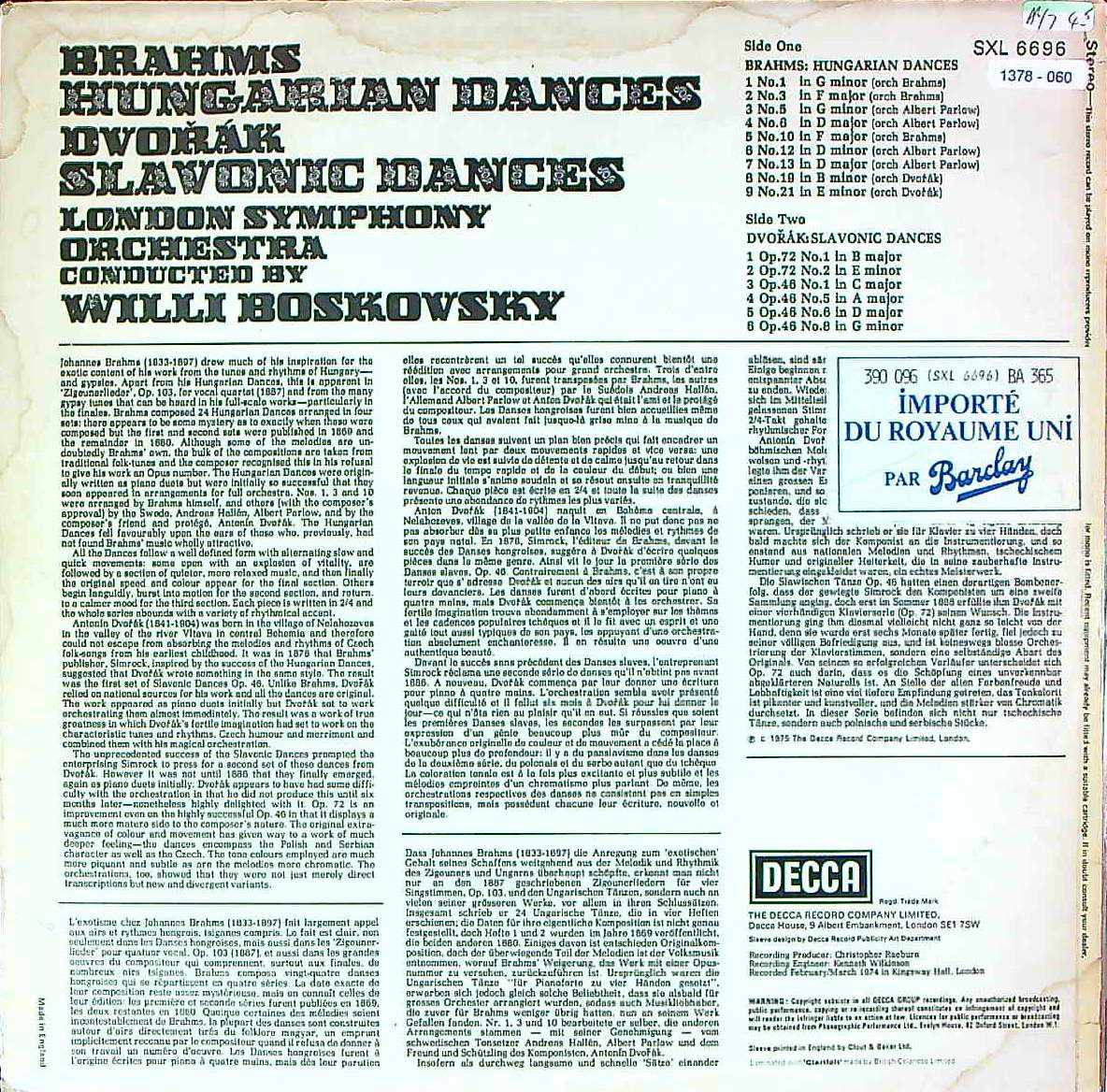 商品コード:1378-060p[DECCA] W.ボスコフスキー/ ブラームス:ハンガリー舞曲(9曲), ドヴォルザーク:スラヴ舞曲(6曲)