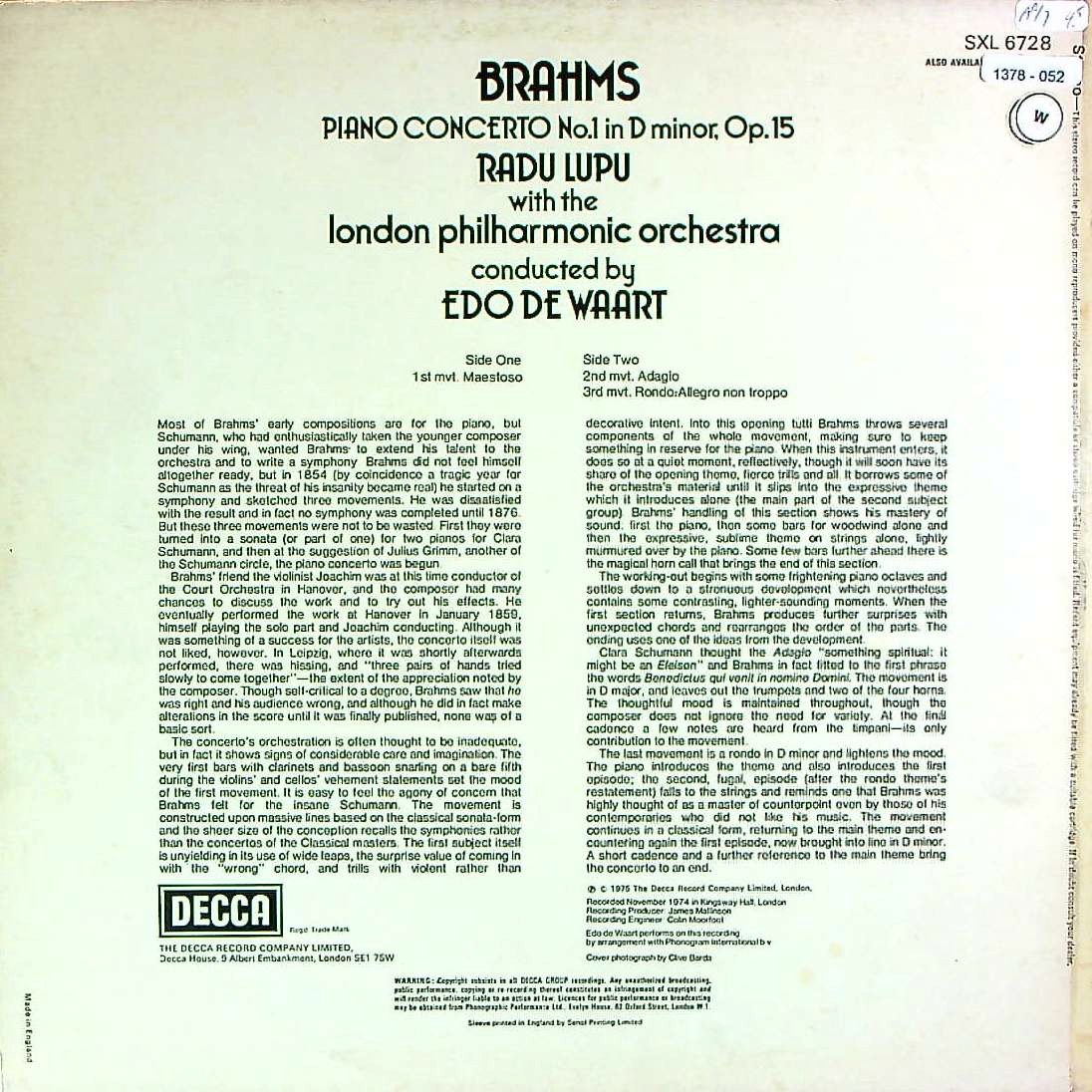 商品コード:1378-052[DECCA] R.ルプ(pf)/ ブラームス:Pf協奏曲1番Op.15