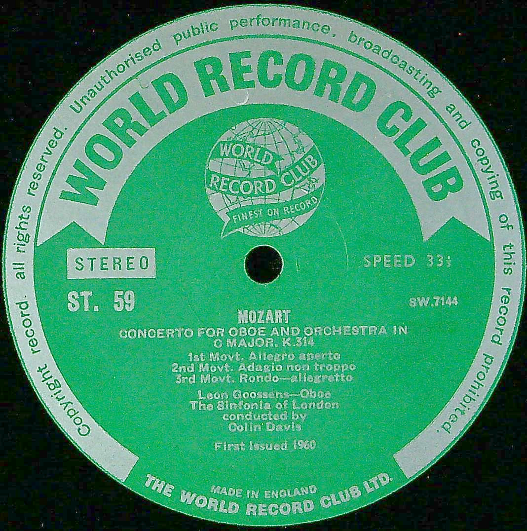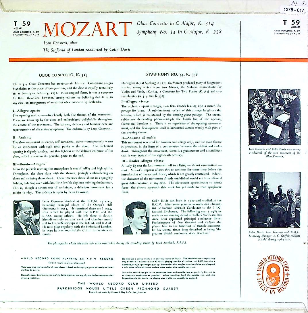 商品コード:1378-017[WRC] L.グーセンス(ob) C.デイヴィス/ モーツァルト:Ob協奏曲K.314, 交響曲34番K.338