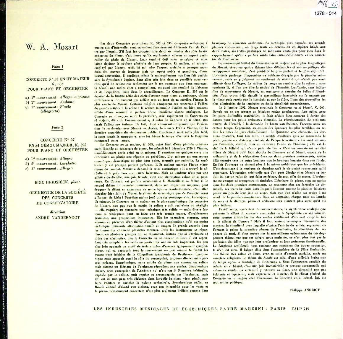 商品コード:1378-014[VSM] E.ハイドシェック(pf)/ モーツァルト:Pf協奏曲25番K.503, 27番K.595