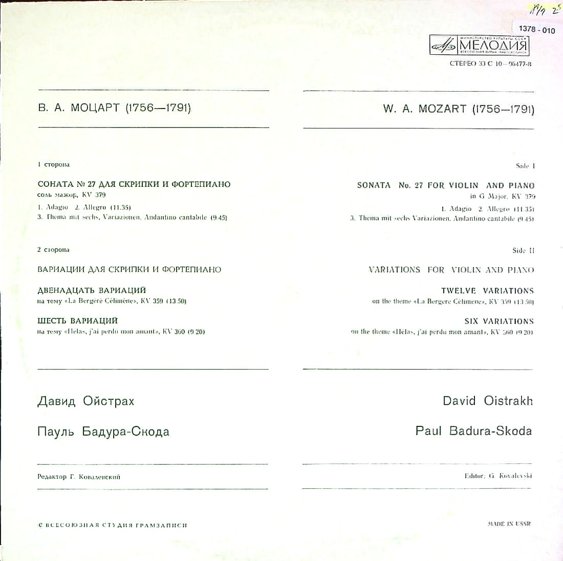 商品コード:1378-010n[MELODIYA] D.オイストラフ(vn) / モーツァルト:Vnソナタ集-3/Vnソナタ 他