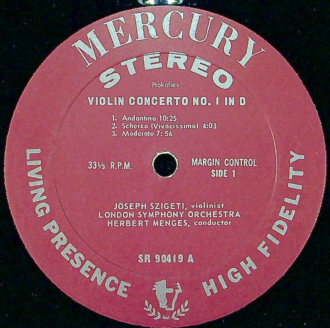 商品コード:REG-4261[米MERCURY] J.シゲティ(vn)/R.ボーガス(pf) / プロコフィエフ:Vn協奏曲1番Op.19, ストラヴィンスキー:協奏的二重奏曲