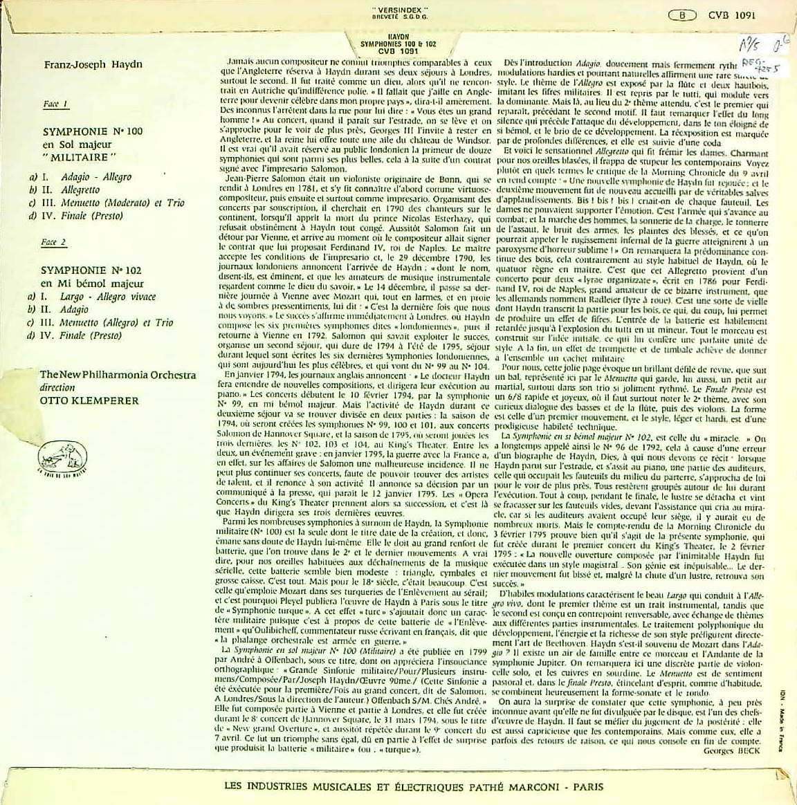 商品コード:REG-4255[仏VSM] O.クレンペラー/ ハイドン:交響曲100番「軍隊」, 102番