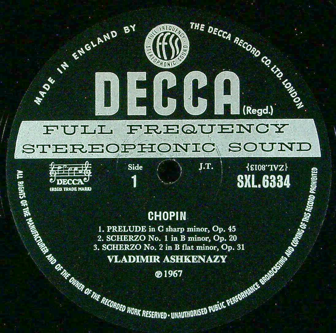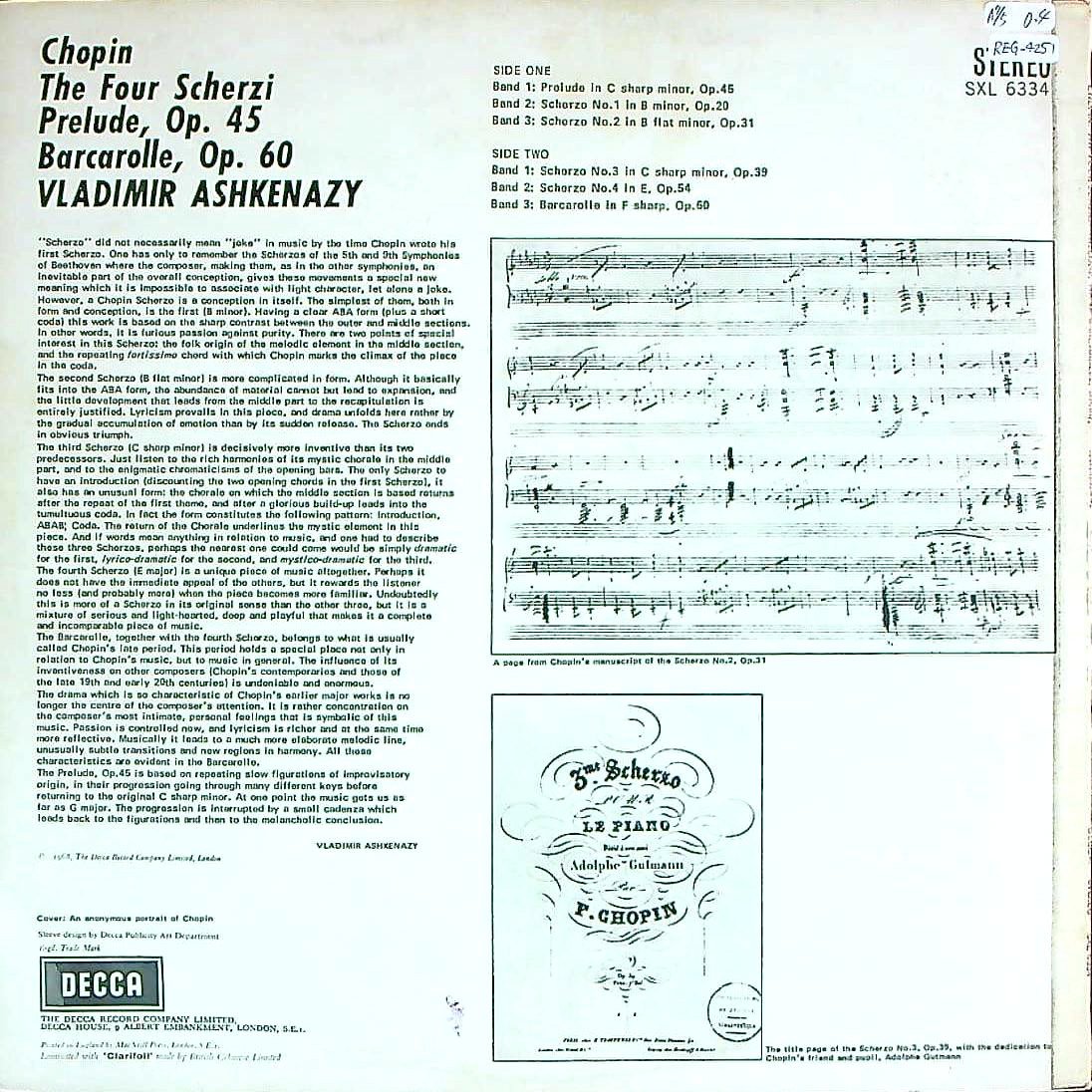 商品コード:REG-4251[英DECCA] V.アシュケナージ(pf) / ショパン:スケルツォ1~4番, 前奏曲Op.45, 舟歌Op.60