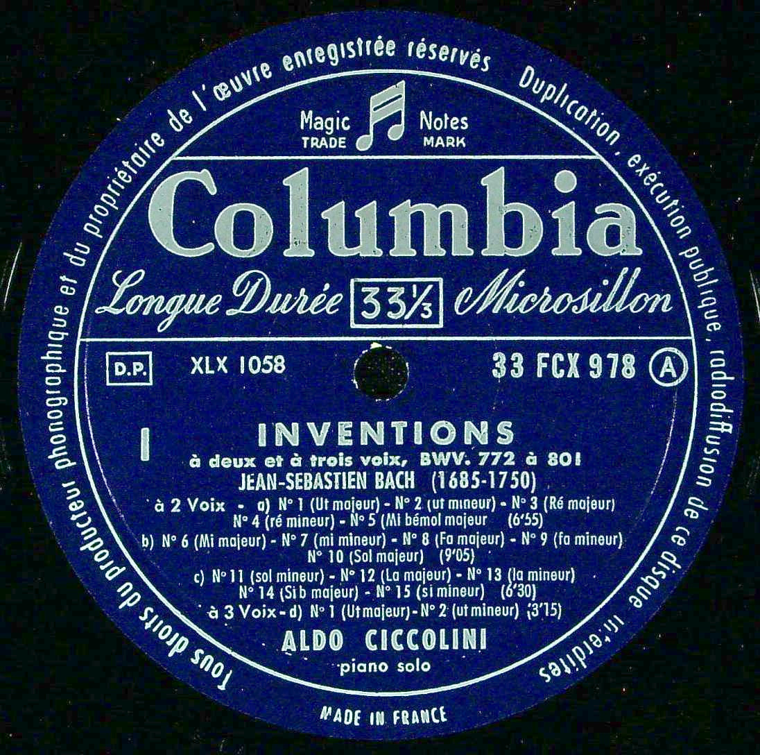 商品コード:REG-4244[仏COLUMBIA] A.チッコリーニ(pf) / バッハ:インヴェンションとシンフォニア(全30曲)