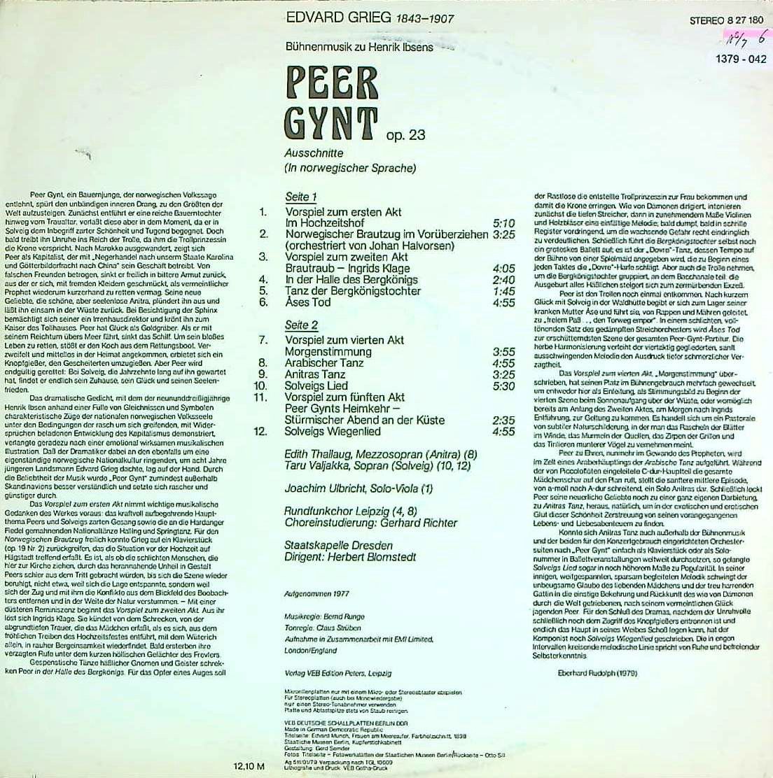 商品詳細:通常「ペール・ギュント」というタイトルの場合は管弦楽のための2つの組曲Op.46/55。第2組曲には「ソルヴェイグの歌」も含まれソプラノ歌手も参加する。当LPの「ペール・ギュント」は組曲ではなく劇付随音楽の方の短縮版が演奏されている。全曲の場合はLP2枚が必要となり、1枚で収めるには短縮版が用いられる。劇付随音楽「ペール・ギュント」は全5幕で全27曲(番号付きの26曲と番号なしの1曲)という構成である。演奏時間は計約85分となる。ここでは27曲から12曲を抜粋したハイライトとしている。重要な場面は漏らさず、 ソルヴェイグの歌,ソルヴェイグの子守唄の2曲も収録している。組曲版であるか劇付随音楽版であるかはOp.番号で判別ができる。Op.23なら劇付随音楽版である。劇付随音楽版は1987年にペータース社から出版された。演奏会用に編曲された第1組曲Op.46はグリーグ自身が編曲した4曲が1891年に出版。第2組曲Op.55の4曲は1893年に出版された。印象的な管弦楽「朝」は第1組曲の第1曲。「ソルヴェイグの歌」は第2組曲の第4曲に入り2曲を連続で演奏してもLP1枚に収まる事から大半のLPは第1組曲+第2組曲の計8曲入りであることが多い。特に「朝」は多くのTV-CMや番組のテーマ曲として使われてきた歴史がある。「ペール・ギュント」において「ソルヴェイグの歌」は外せないが組曲は演奏会用のオーケストラ曲の為歌は省かれる。通常の組曲版は歌が入ることはあまりないが、組曲に中の「ソルヴェイグの歌」では実際に歌手が登場する録音も存在するので一概には言えなっている。通例では「ソルヴェイグの歌」をソプラノ付きでコンサートで聴きたい場合は、組曲ではなく 付随音楽の全曲版、または単独歌曲版(Op.23-19)で聴くことになる。上記のような例外もあるので注意。但し組曲では勿論合唱は省かれる。どちらの版でも主要となる曲は登場するので連続性があるかどうかの違いが大きいと思われる。しかし劇付随音楽版といえどもハイライトまたは短縮版では連続性は期待できなくなる。歌手の2人がEMI籍だった為EMIとの共同制作録音となった。何方も北欧の歌手で現地語で歌っている。現地語での歌唱を重視しドイツ人ではなく現地人で欧州で活動している歌手を2人選んだ、2人は当時EMIに籍があった為、EMIとの共同制作録音となった。勿論録音はETERNA側で行っている。元々ハイライトの短縮版録音で全曲録音は存在しない。