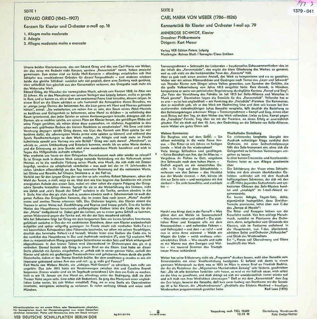 商品コード:1379-041n[ETERNA] A.シュミット(pf)/ グリーグ:Pf協奏曲Op.16, ウェーバー:コンツェルトシュテュックOp.79
