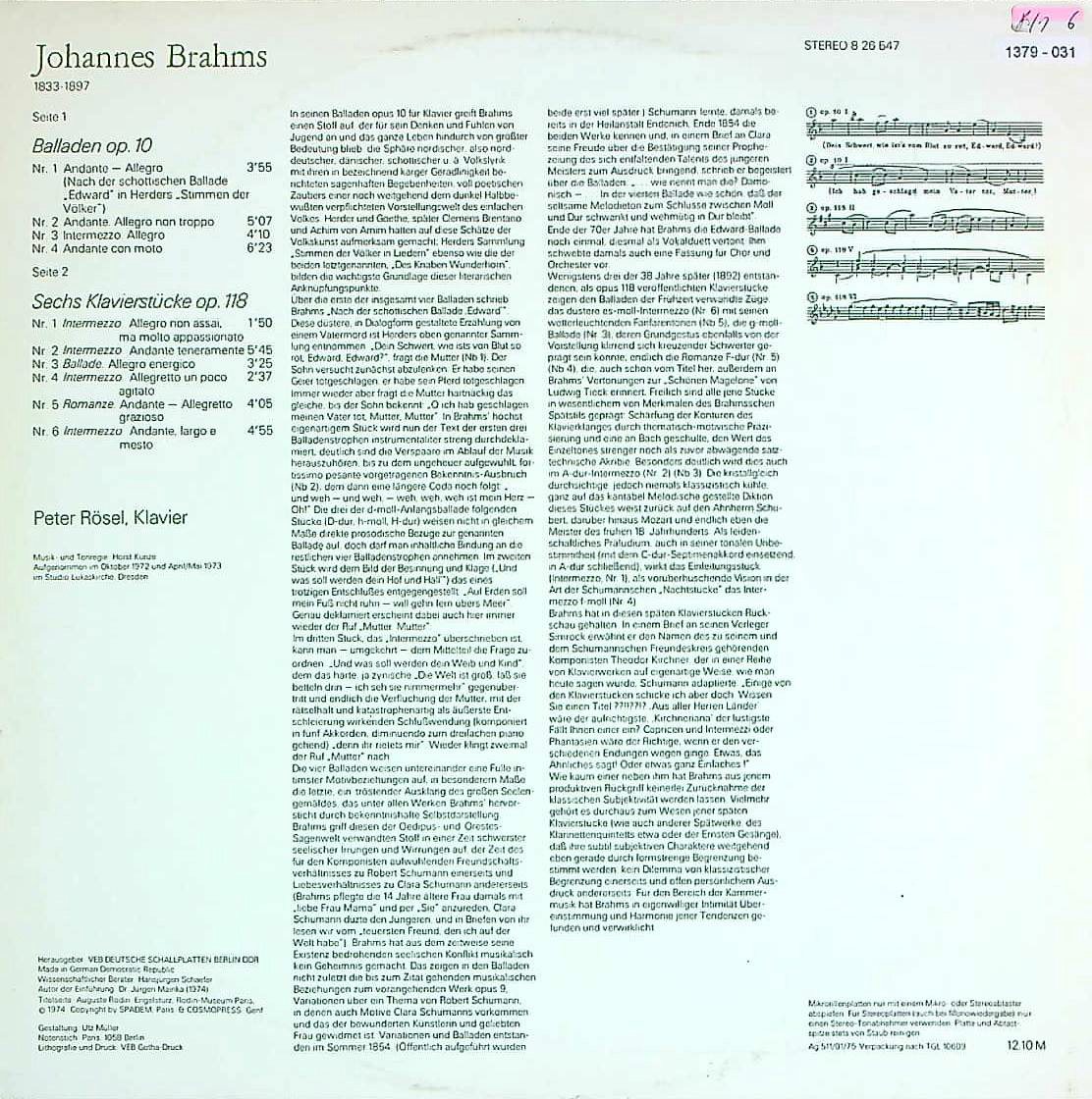 商品コード:1379-031t[ETERNA] P.レーゼル(pf) / ブラームス:Pf作品全集vol.4/バラード集Op.10(全4曲), 6つの小品Op.118