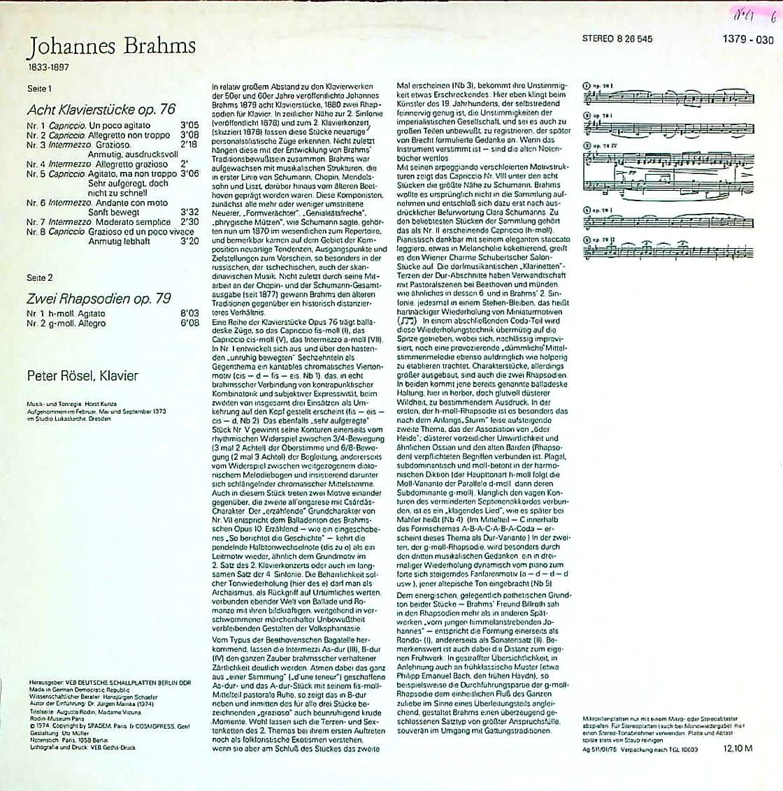 商品コード:1379-030t[ETERNA] P.レーゼル(pf) / ブラームス:Pf作品全集vol.2/8つの小品Op.76, 2つの狂詩曲Op.79