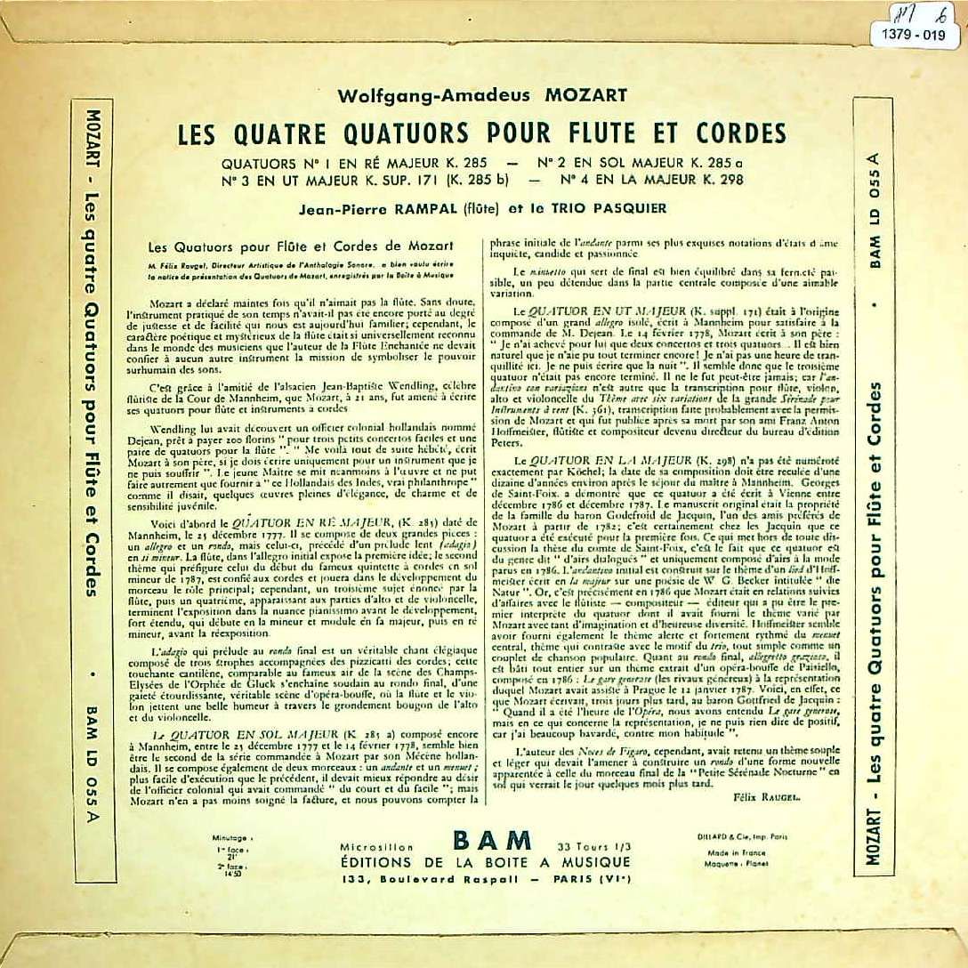 商品コード:1379-019[BAM] J.P.ランパル(fl) パスキエ・トリオ / モーツァルト:Fl四重奏曲(全4曲)