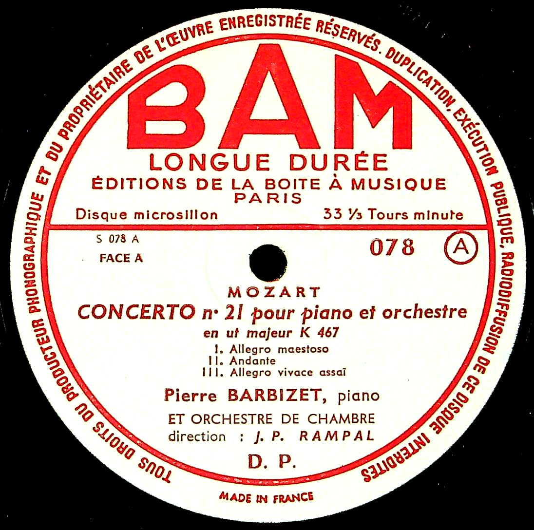 商品詳細:初出は1960年代前半。LD 078/5078(モノ/ステレオ)。モノラル・オリジナル盤がカイエ・デュ・ディスクのジャケットに入るサードパーティ発売分も存在する。これは正規盤である。ステレオも存在するが1962年録音なのでフランスはモノラルの絶頂期である。ピアノのピエール・バルビゼは、1922年チリ・アリカ生まれのフランス人。パリ音楽院に学び、1948年スヘフェニンヘン国際コンクール1位。'49年のロン=ティボー・コンクール5位入賞。1950年代から、生涯の相棒C.フェラス(11歳年下)とデュオを組み、多くの名演を残した。彼のピアノは明るく明快。ランパルの指揮が意外なほどリズム感があり、モーツァルト的な素地を完全に提供している。バルビゼでなくとも高水準の演奏は約束されているが、バルビゼのラテン気質の音色こそこのLPにふさわしい色合いだろう。不思議な共演はラテン気質で絶妙な世界感を作り出した。この共演は意外な程上手くいった。