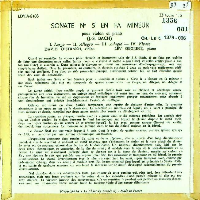 商品コード:1379-006[Chant du Monde] D.オイストラフ(vn)/ バッハ:Vnソナタ第5番BWV.1018