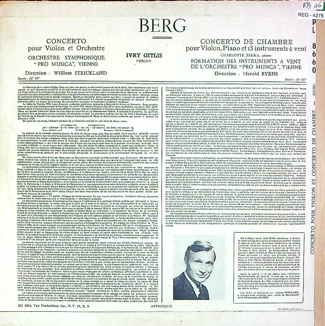 商品コード:REG-4275[仏Pathé-VOX] I.ギトリス(vn)/ ベルク:Vn協奏曲, 室内協奏曲
