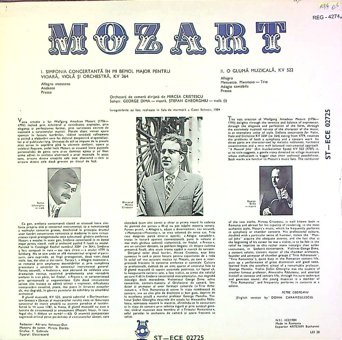 商品コード:REG-4274n[Electrecord] G.ディマ(vn) S.ゲオルギウ(va) M.クリテスク指揮/ モーツァルト:協奏交響曲K.364, 音楽の冗談K.522