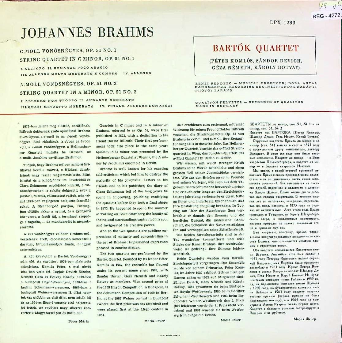 商品コード:REG-4272n[洪QUALITON] バルトークQt. / ブラームス:SQ1-2番Op.51