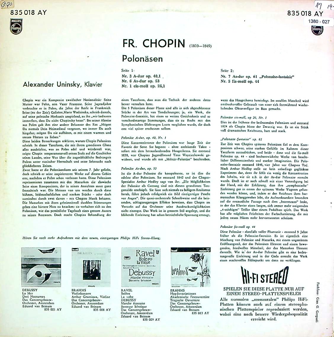 商品コード:1380-027[PHILIPS] A.ウニンスキー(pf) / ショパン:ポロネーズ1番, 3番, 5~7番