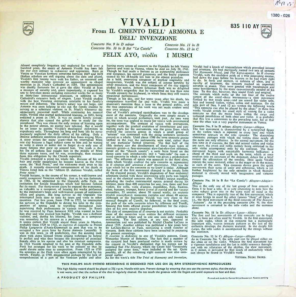 商品コード:1380-026[PHILIPS] イ・ムジチ合奏団 F.アーヨ(vn) / ヴィヴァルディ:Vn協奏曲集Op.8「和声と創意の試み」