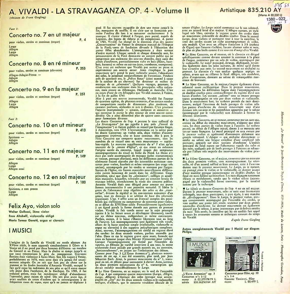商品コード:1380-022pn[PHILIPS] イ・ムジチ合奏団 F.アーヨ(vn) 他/ ヴィヴァルディ:Vn協奏曲「ラ・ストラヴァガンツァ」Op.4(全12曲)