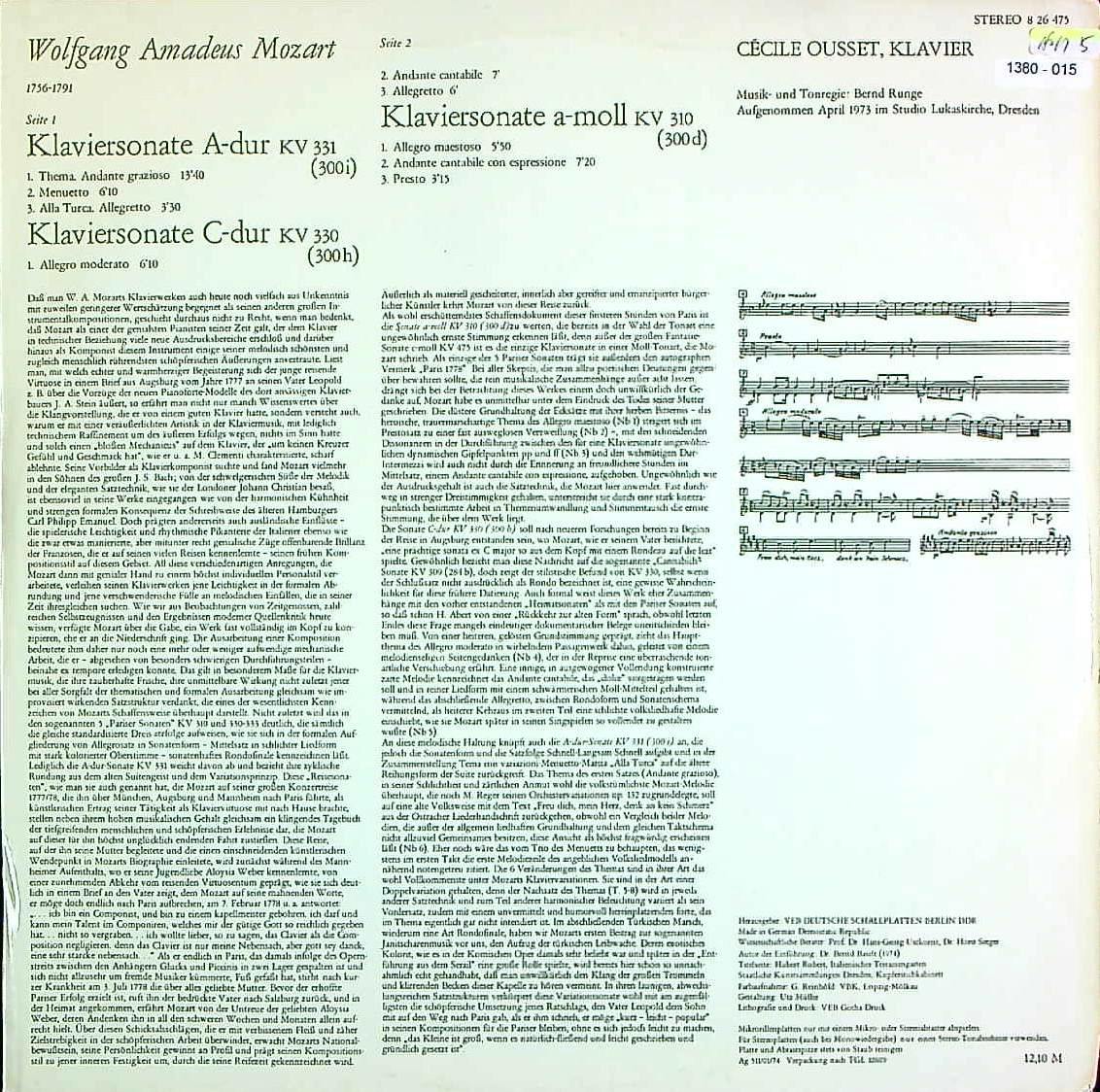 商品コード:1380-015n[ETERNA] C.ウーセ(pf) / モーツァルト:Pfソナタ11番K.331, 10番K.330, 8番K.310