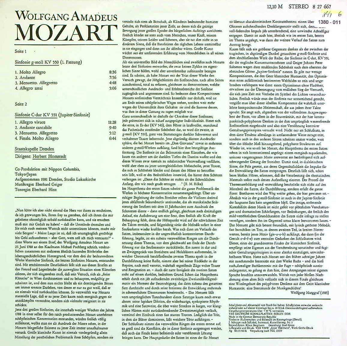 商品コード:1380-011n[ETERNA] H.ブロムシュテット/ モーツァルト:交響曲40番K.550, 41番K.551「ジュピター」