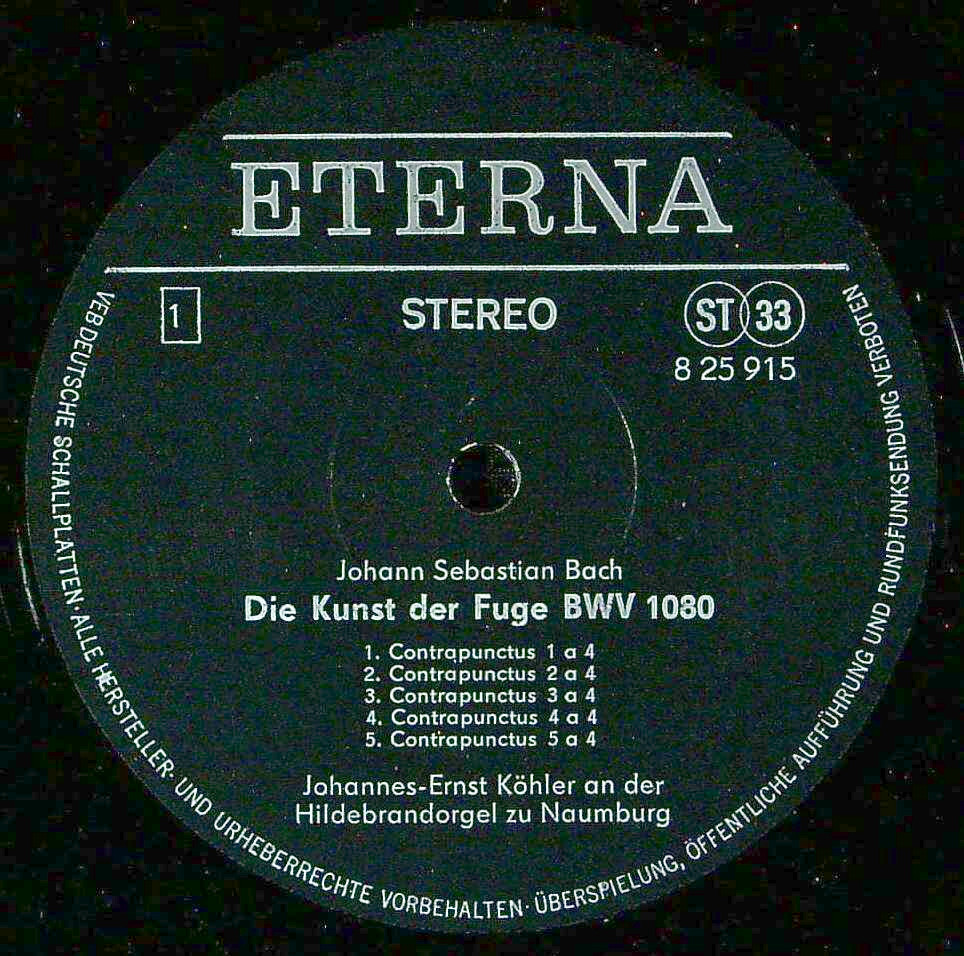 商品コード:1380-005n[ETERNA] J.E.ケーラー(org) / バッハ:フーガの技法BWV.1080