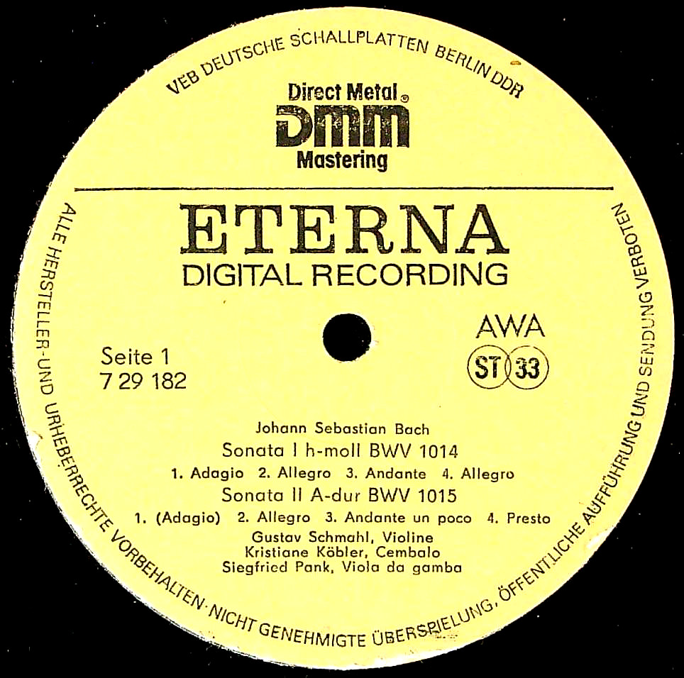 商品コード:1380-002n[ETERNA] G.シュマール(vn) K.ケブラー(cemb) S.パンク(gamb) / バッハ:Vnとcembのためのソナタ1~6番BWV.1014~1019