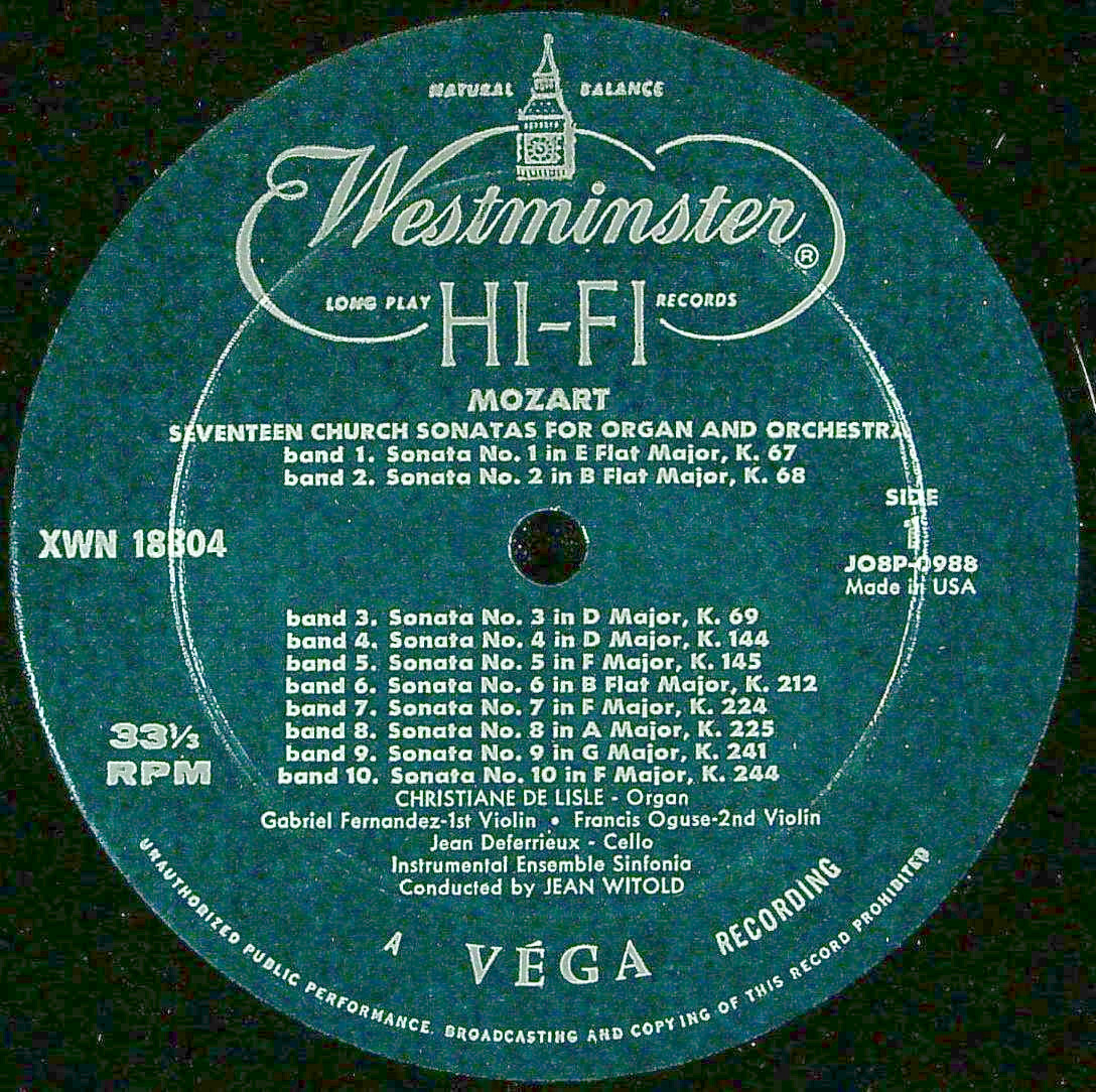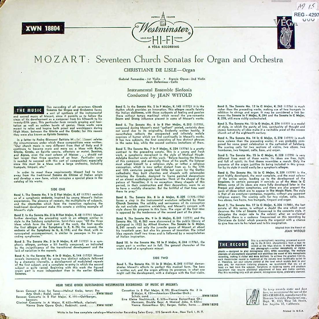 商品コード:REG-4297[米WESTMINSTER] C.d.リール(org)/ モーツァルト:教会ソナタ(全17曲)