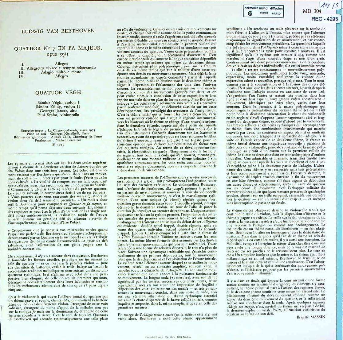 商品コード:REG-4295[仏VALOIS] ヴェーグQt. / ベートーヴェン:SQ7番Op.59-1
