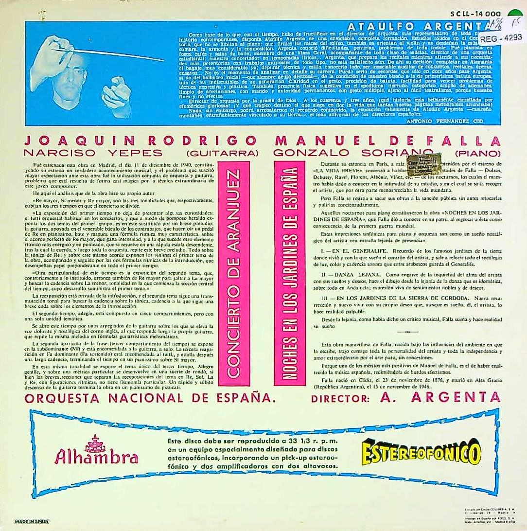 商品コード:REG-4293[COLUMBIA] N.イエペス(gt)/G.ソリアーノ(pf)/ ロドリーゴ:アランフェス協奏曲, ファリャ:「スペインの庭の夜」