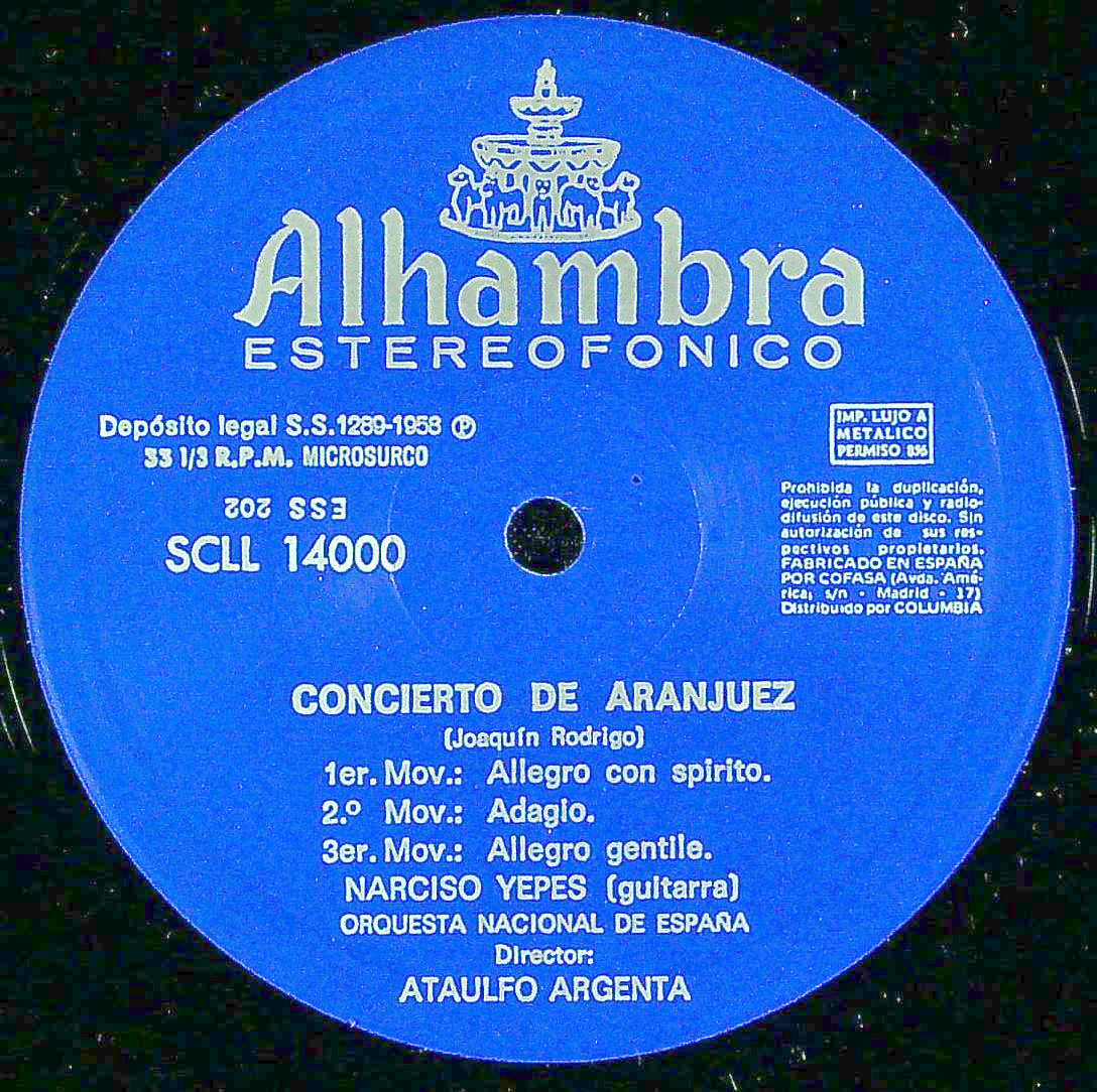 商品詳細:スペインColumbiaレーベルだが、内容的にSXL 2091のスペイン・プレスと内容は同じである。世界に、スペインの巨匠アルヘンタの名を轟かせた超名演。アランフェス協奏曲の超名演であり、イエペスの出世作。また、スペインが世界に誇る希代の名ピアニスト、ゴンサロ・ソリアーノの名演がB面に入るという凄いLP。SXLも高価だが、この地元スペインプレスも凄い音が出てくる。スタンパーはDECCAのものではなく、自前の原盤を使用したようで、SXLとはかなり音作りが違うだろう。録音は1958年1月1日スペインで行われたとする説があるが、アルヘンタは1958年1月21日に亡くなっていて、実際は1957年5月23日マドリードというデータが正しいのではと思われる。「アランフェス協奏曲」は1939年に書き上げられ、1940年11月にバルセロナで初演された。初演のギターを弾いたのはレヒーノ・サインス・デ・ラ・マーサ(1896~1981)で、伴奏はセサール・メンドーサ・ラサーリェ指揮バルセロナ・フィルハーモニー管弦楽団だった。デ・ラ・マーサは「アランフェス協奏曲」の世界初録音も行ったらしい。オケはアルヘンタ指揮スペイン国立管弦楽団で1950年前後のSP録音らしい。デ・ラ・マーサはその後スペインRCAに1959年ステレオでの再録音がある。オケはクリストバル・アルフテル指揮マヌエル・デ・ファリャ管弦楽団。アルヘンタは当時DECCAと契約し、英国からの世界進出を考えていた時期だったこともあり、当時まだ新進の31歳のギタリストだったイエペスが抜擢されDECCAで「アランフェス協奏曲」を売り出すこととなる。スペイン・コロンビアは当時DECCAと提携があり、スペイン録音DECCA発売は問題がなかった。「アランフェス協奏曲」はいつの間にかイエペス/アルヘンタという図式になってしまったが、本来は初演者で初録音を行ったデ・ラ・マーサこそがその栄誉に相応しい。これはDECCAの営業戦略による所が大きく、実際英国録音ですらなく、音源のオリジナルはスペイン・コロンビアなのである。また録音は1958年1月1日という情報を流したのはDECCAではないだろうか?ナルシソ・イエペス(1927-1997)はスペイン・ムルシア地方、ロルカの生まれで、こともあろうかデ・ラ・マーサにギターを学んでいた。イエペスは1947年スペイン劇場でスペイン国立管弦楽団の定演コンサートに名指揮者アタウルフォ・アルヘンタにより招かれ、ロドリーゴのアランフエス協奏曲を演奏した。既に演奏会でやっていたとしてもこの録音で有名になることは完全な下剋上ではあるまいか?しかし録音が良く、演奏も素晴らしいことは確かであり、リスナーにとってはどちらでも良い事だろう。1959年にSXL 2091で発売されたこの録音は瞬く間に世界中でベストセラーLPとなり、アランフェス協奏曲=イエペスとなってゆく。ここではDECCAではなく、音源となったスペイン・コロンビア盤を紹介したい。オーディオファイルプレス、高額盤、人気盤、これらの要素から離れて、この録音がされた当時に思いを馳せることができる最高のプレスであると思えるからである。ソリアーノの「スペインの庭の夜」にもストーリーはあると思われるが、今回は割愛とした。