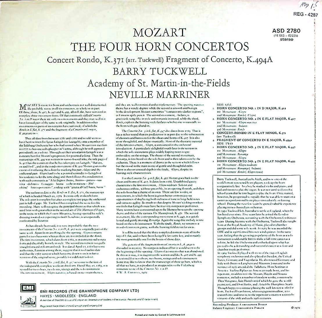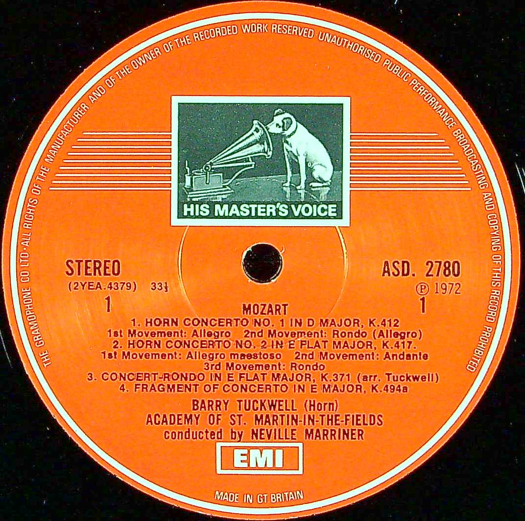 商品コード:REG-4287[英HMV ] B.タックウェル(hr) N.マリナー / モーツァルト:Hr協奏曲集1-4番, K.494a, ロンドK.371(全6曲)