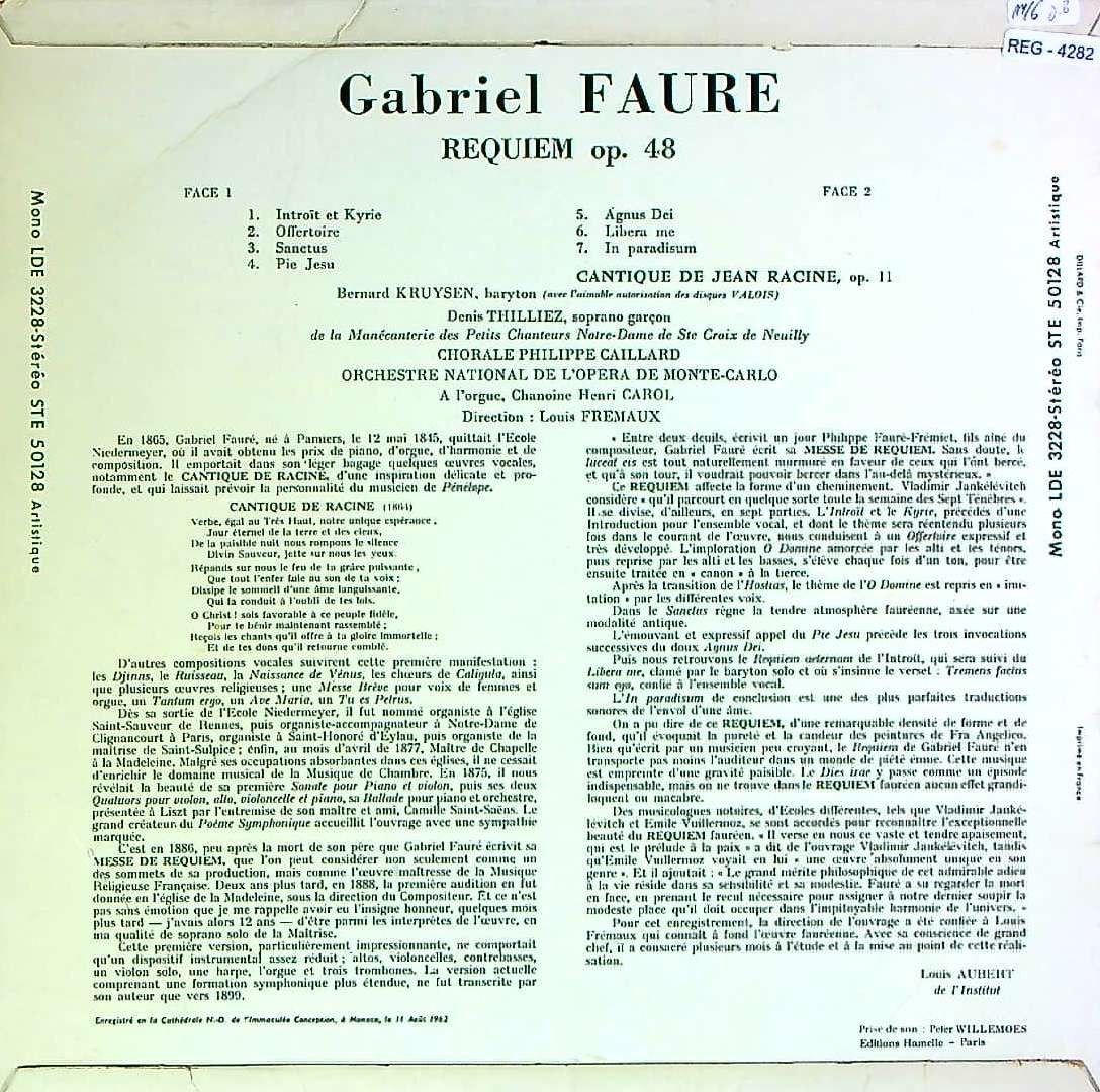 商品コード:REG-4282[仏ERATO] L.フレモー/ フォーレ:レクイエム, ラシーヌ讃歌