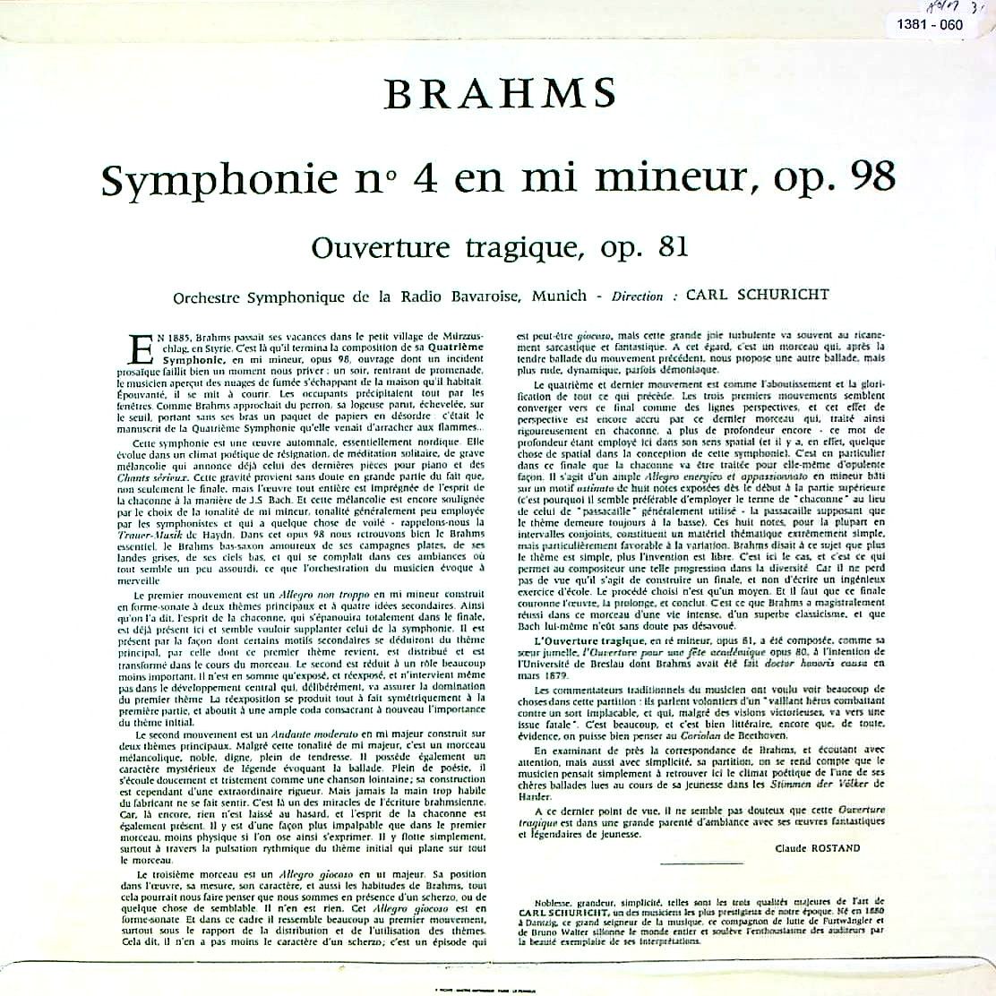 商品コード:1381-060[GUILDE du DISQUE] C.シューリヒト/ ブラームス:交響曲4番Op.98, 悲劇的序曲Op.81