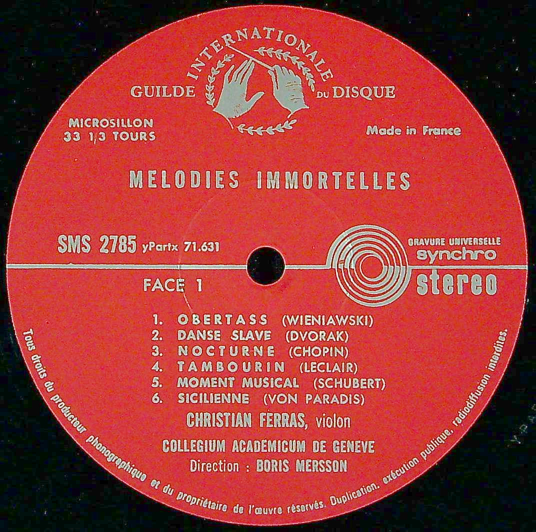 商品コード:1381-054[GUILDE du DISQUE] C.フェラス(vn)/ Vn小品集/ヴィエニャフスキ, ドヴォルザーク, ショパン 他