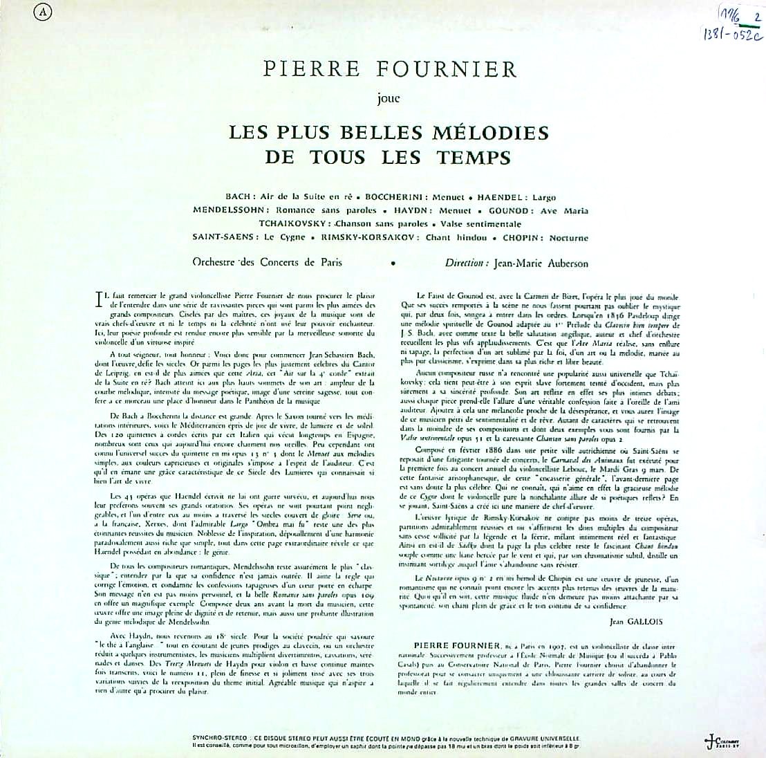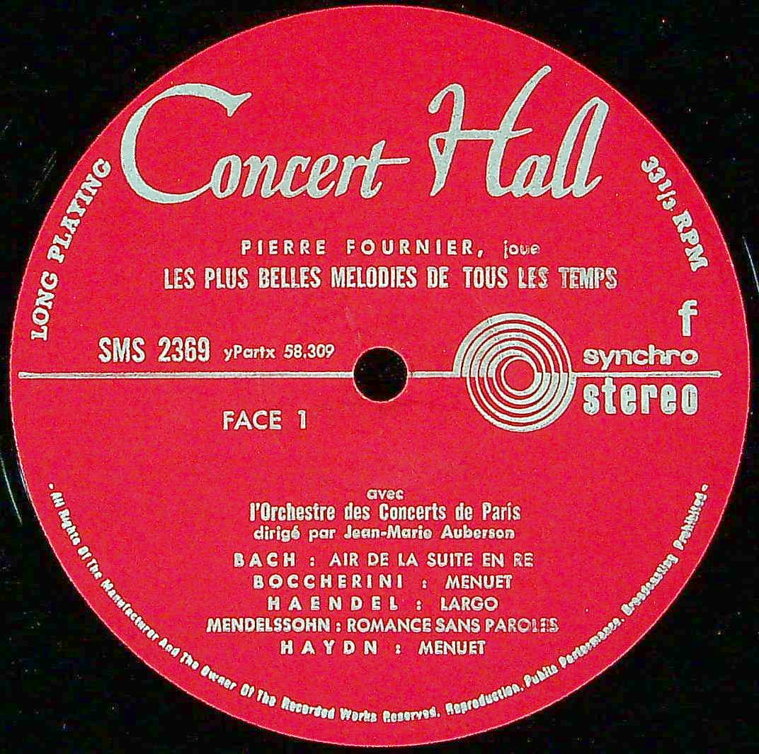 商品コード:1381-052c[Concert Hall] P.フルニエ(vc) / Vc小品集(11曲)/バッハ, ボッケリーニ, ヘンデル, メンデルスゾーン 他