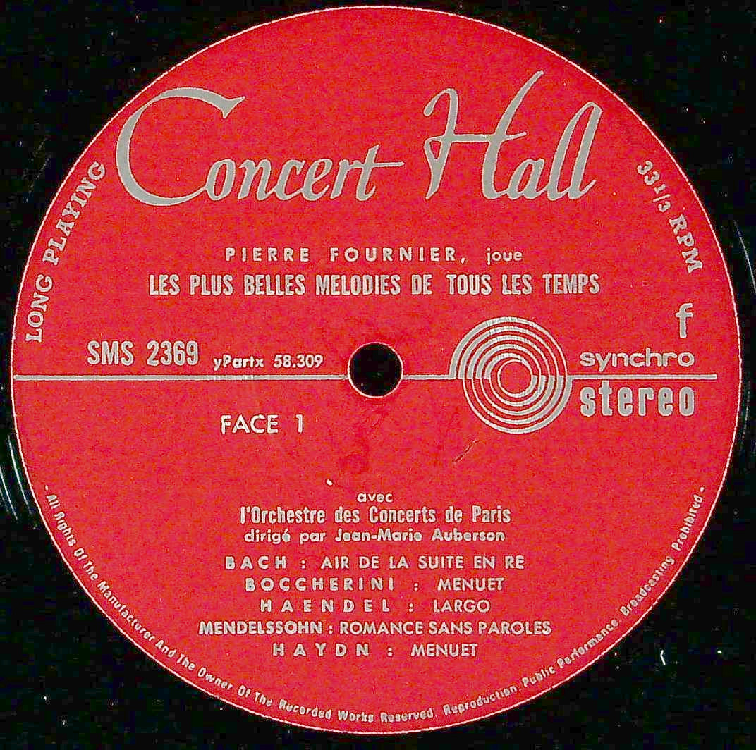 商品コード:1381-052b[Concert Hall] P.フルニエ(vc) / Vc小品集(11曲)/バッハ, ボッケリーニ, ヘンデル, メンデルスゾーン 他