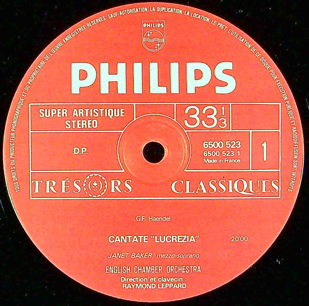 商品詳細:英国のソプラノ(メゾ・ソプラノ)、J.ベイカーには、やはりヘンデルがぴったりと合うようだ。A面がカンタータ「ルクレツィア」、B面が6作品の歌劇/オラトリオ~1作品1曲づつの6曲のアリア。このLPは1973年の歌物レコード部門グランプリ・ディスクを受賞。またフランスではGrand Prix Mondial du Disque de Montreux賞を受賞した。英語圏の歌手でなければ製作は難しいヘンデルのアリア集。1970年代前半のプレスのようだが、音質は大変良く、ベイカーの息づかいまでが聴こえてきそうだ。ヘンデルは、バッハには無い悲劇性を書けた作曲家であり、英語の歌詞により、バッハとはまったく異なる世界観を持つ。このあたりを見事に描ききった素晴らしい一枚。レッパードのオケもベストマッチング。歌物好きには見逃せない1枚と確信する! ヘンデルを歌うには英国人歌手は良いはずであり、1970年代ではジャネット・ベイカー以外あり得ないだろう!