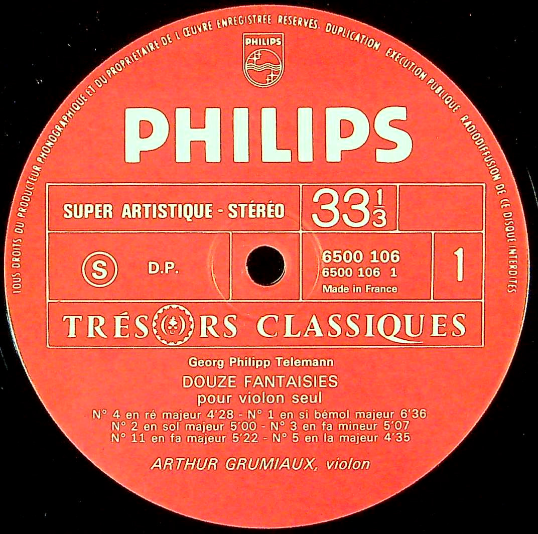 商品コード:1381-047pb[PHILIPS] A.グリュミオー(vn) / テレマン:無伴奏Vnのための12の幻想曲