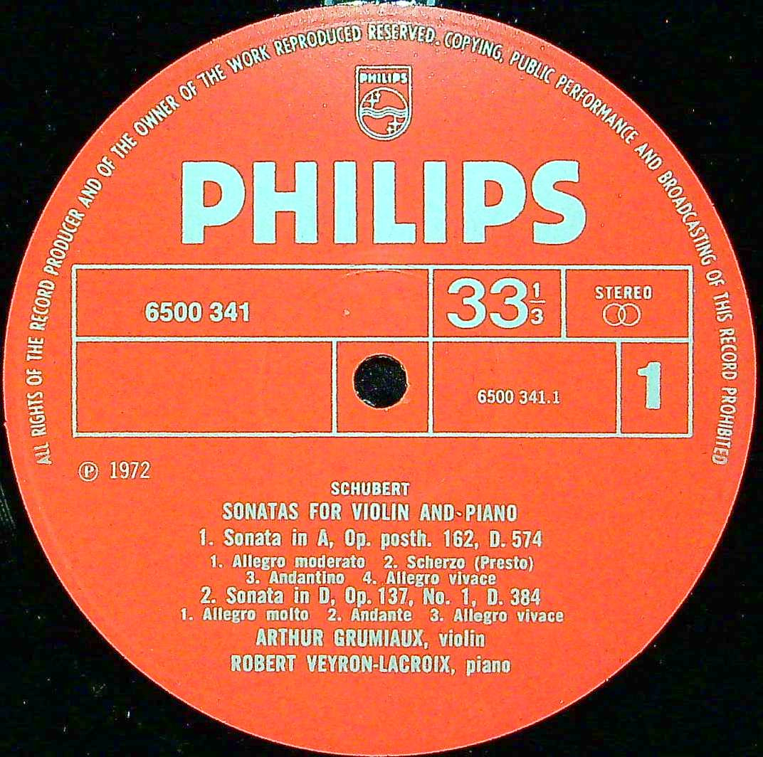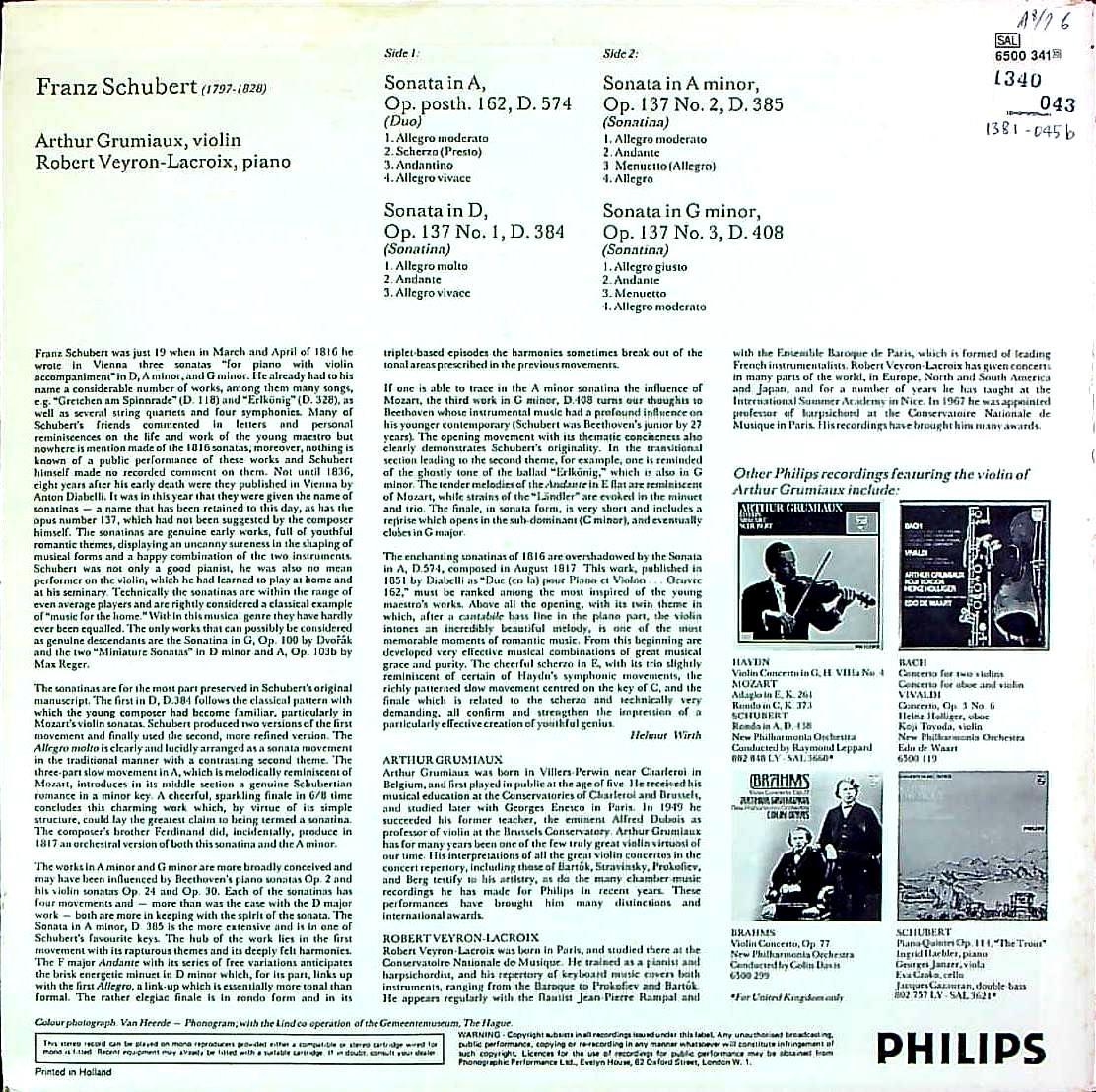 商品コード:1381-045b[PHILIPS] A.グリュミオー(vn)/ シューベルト:二重奏曲D.574, Vnソナチネ1~3番Op.137