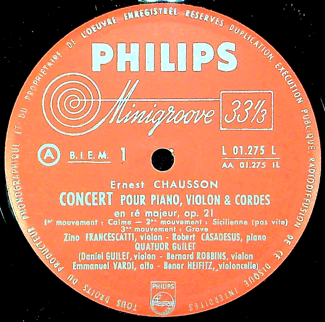 商品コード:1381-039[PHILIPS] Z.フランチェスカッティ(vn)/ ショーソン:協奏曲Op.21, 詩曲Op.25