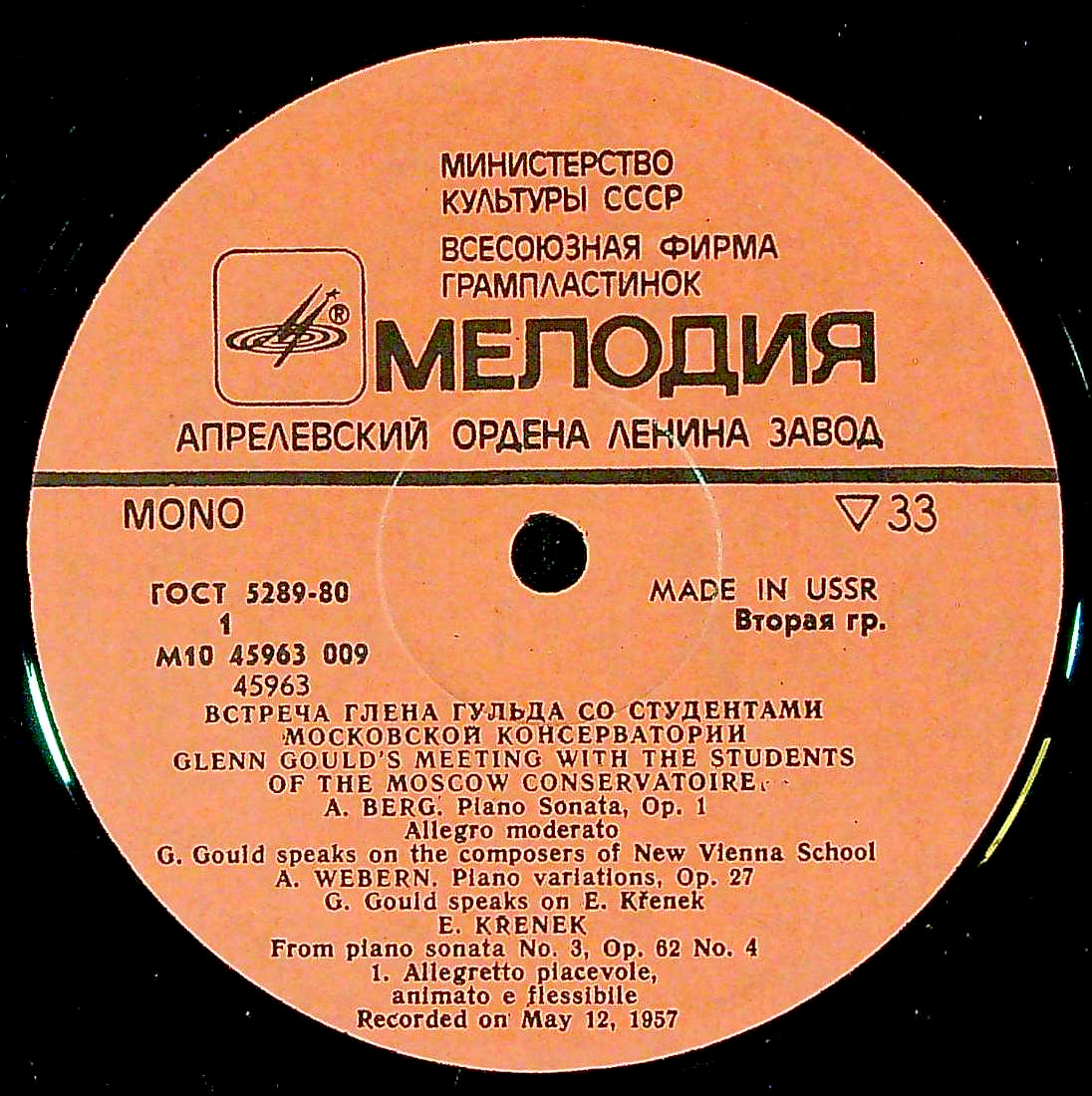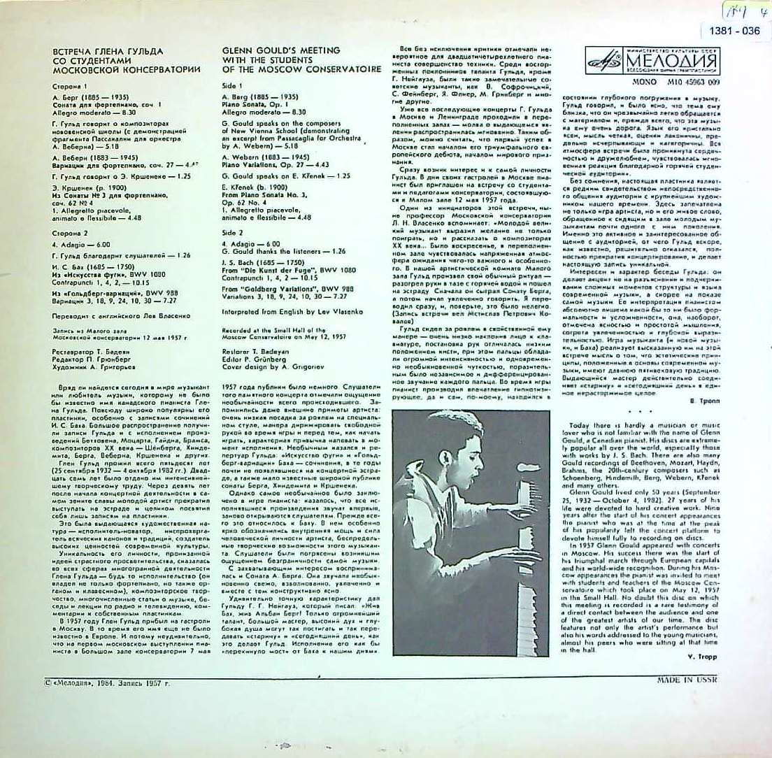 商品コード:1381-036n[MELODIYA] G.グールド(pf)(演奏と講演) / 1957年モスクワ・ライヴ/ベルク, ヴェーベルン, クルシェネク, バッハ