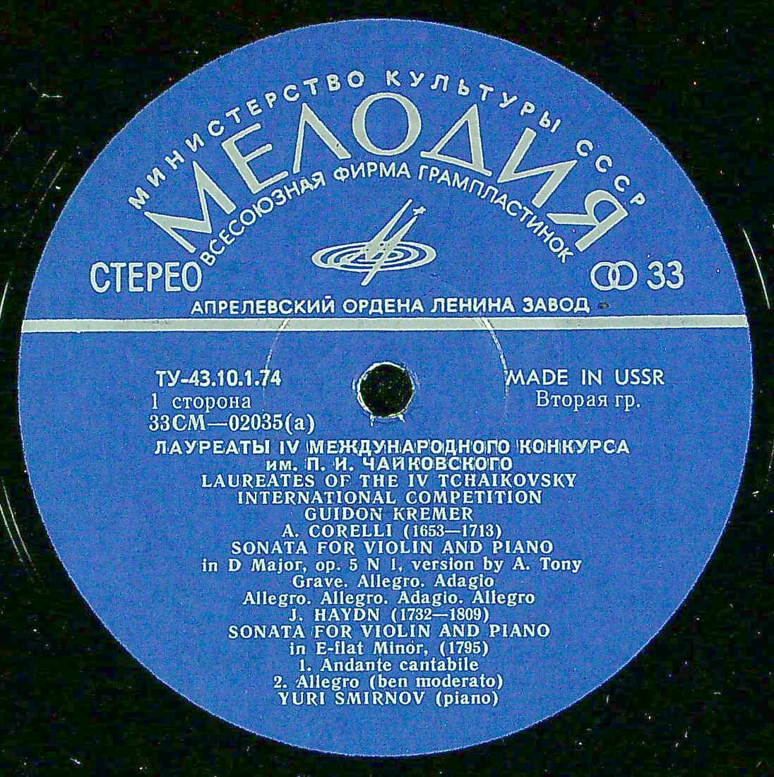 商品詳細:これは1970年に行われた第4回チャイコフスキー国際コンクールの受賞者のための記念録音である。第1位 ギドン・クレーメルだった。因みに第2位 ウラディーミル・スピヴァコフ(ソ連)、藤川真弓(日本)が同位入賞を果たした。また第3位 リアーナ・イサカーゼ(ソ連)、第4位 タチヤーナ・グリンデンコ(ソ連)、アンドレイ・コルサコフ(ソ連)と4位までに4人のロシア人が入る異例の年となった。同ピアノ部門でも第1位 ウラジミール・クライネフ(ソ連)、ジョン・リル(イギリス)同位となった。クレーメルはチャイコフスキー国際コンクール以前にも1967年にエリザベート王妃国際コンクールに入賞すると、1969年にはパガニーニ国際コンクール第1位となっている。ここからクレーメルの輝かしいキャリアが始まる。演奏会の回を重ねるにつれ、同世代の演奏家の中でも極めて独創性に富み、素晴らしい演奏家である、との彼への評判は世界でも知られるようになり、次第にトップ・ヴァイオリニストとしての地位を不動のものにしていった。このLPは優勝記念にご褒美として贈られた丸々1枚分の録音である。4曲入りでレーベルにもロシア語で「チャイコフスキー国際コンクールの優勝者ギドン・クレーメル」と印刷されている。これまで国際的には無名であり、1967年エリザベート王妃国際コンクールの受賞記念LPに3人(P.ヒルシュホーン/D.ミラノヴァ/G.クレーメル)の一人として、エルガー:Vn協奏曲1曲を録音しただけの存在であった。このLPを出した後のクレーメルは飛ぶ鳥を落とす勢いで国際的ヴァイオリン奏者の道を駆け上がっていく。その切っ掛けとなったLPであった。A面のコレッリ、ハイドンと、これまでにない斬り込むようなヴァイオリンの音色が凄い。ハイドンはピアノ・トリオHob.XV:31の編曲で初録音の可能性が高い。4曲とも高いテンションを張った演奏で存在感の大きなLPである。