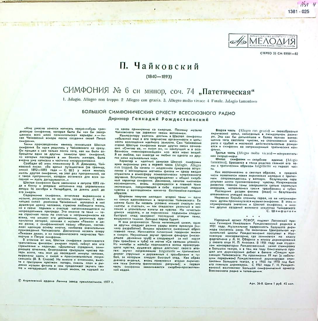 商品コード:1381-025t[MELODIYA] G.ロジェストヴェンスキー/ チャイコフスキー:交響曲6番Op.74「悲愴」
