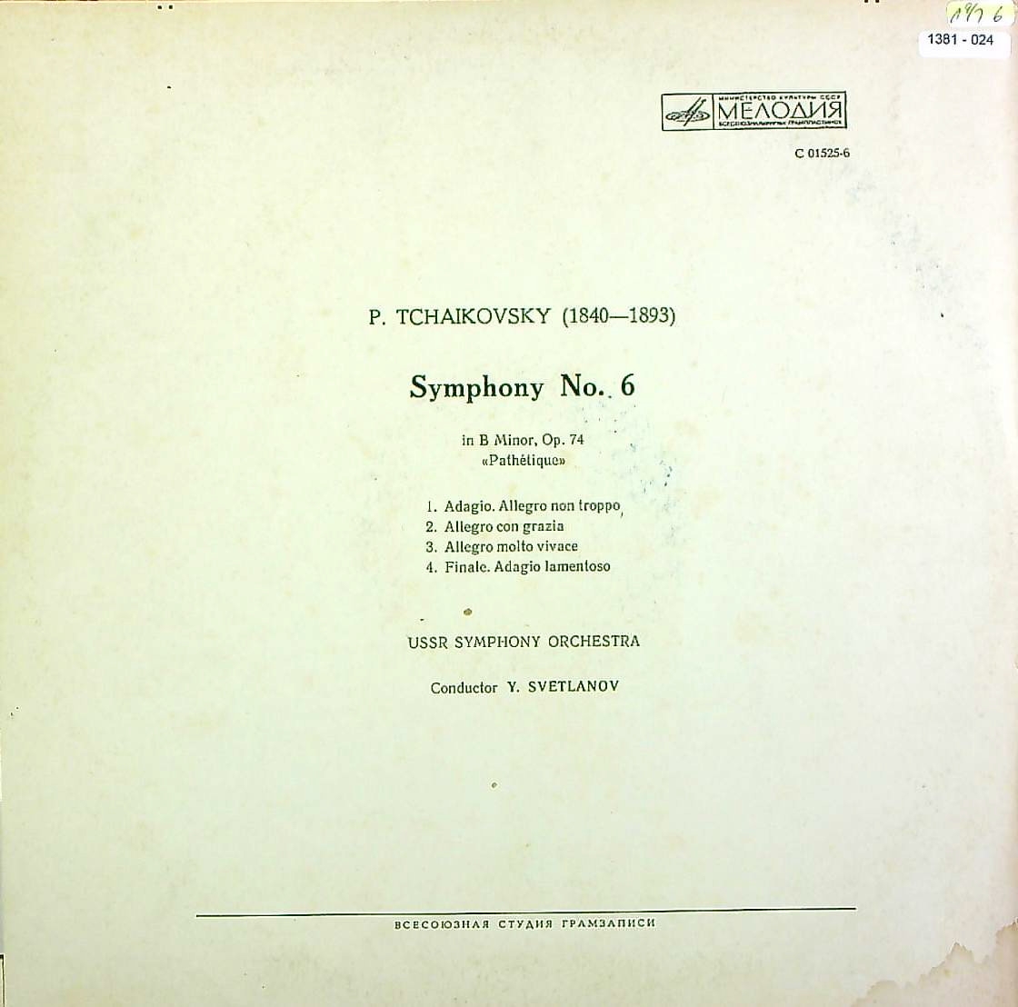 商品コード:1381-024n[MELODIYA] E.スヴェトラーノフ/ チャイコフスキー:交響曲6番Op.74「悲愴」