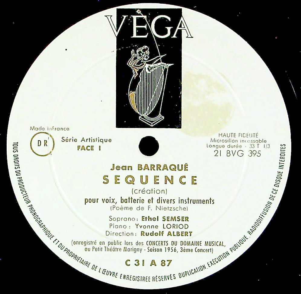 商品コード:1381-004[VÉGA] Y.ロリオ(pf) E.スムセ(s) 他/ J.バラケ:セカンス(1956)
